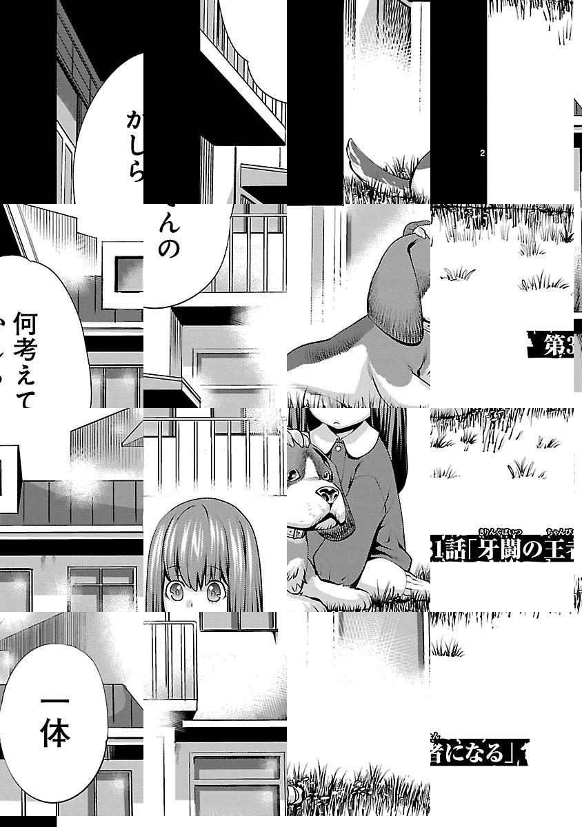 冴えない青年・野本は謎の少女・ヒトミと出会い、とある廃棄場へと連れてこられる。行き場のないモノが集められたそこでは、人の頭脳と獣の牙を併せ持つ「獣人」達による凄惨な賭け試合が行われていた——。その戦いの名は「牙闘(キリングバイツ)」——!