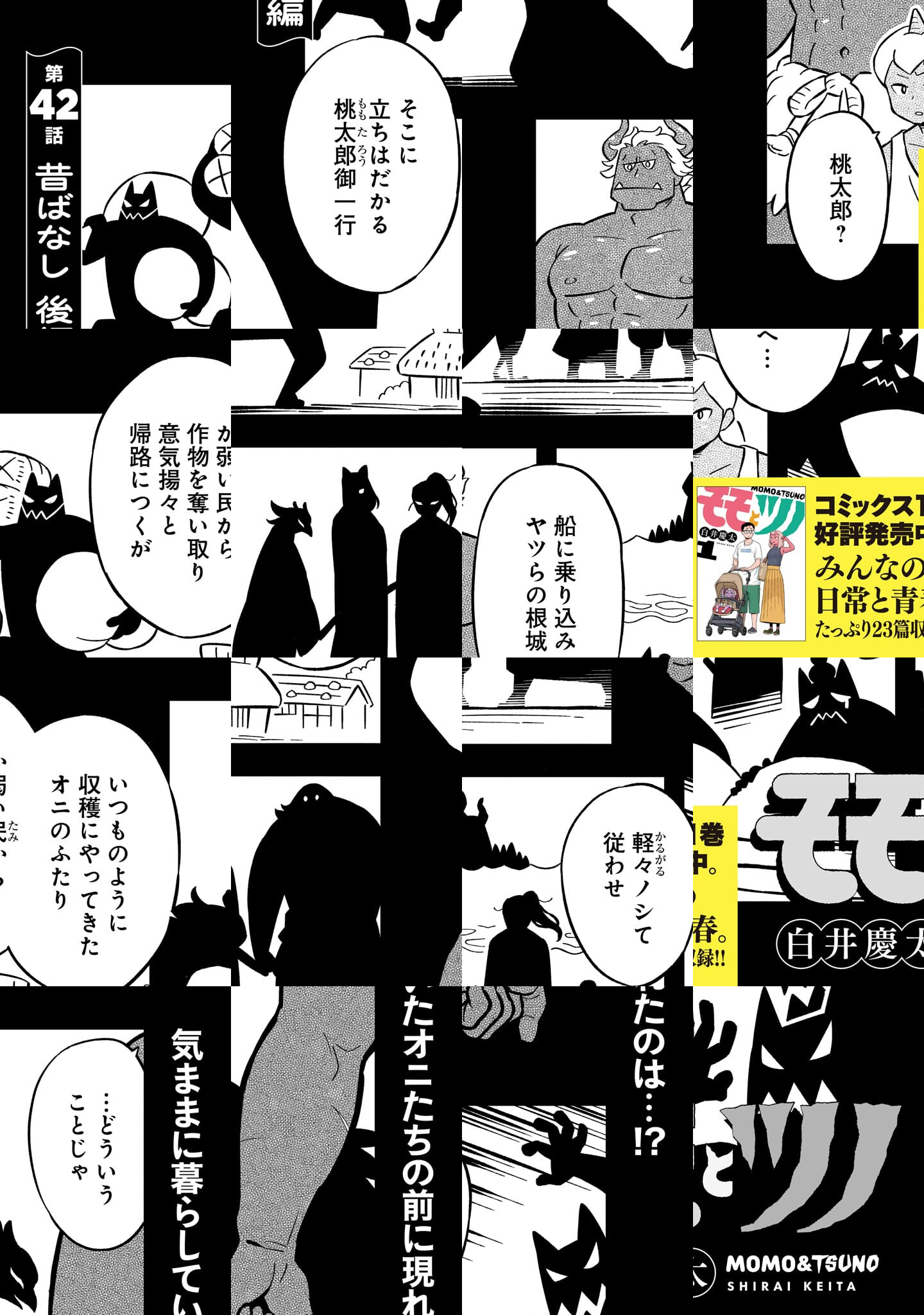 かつて生死を懸けて戦った桃太郎と鬼王丸。 しかしその子孫たちも現代となれば、争うことなく平穏に暮らしております−−。 ヒト、モモ、ツノ、ケモノ……。 多種族が織りなす「ももたろう」のその後のせかい!!