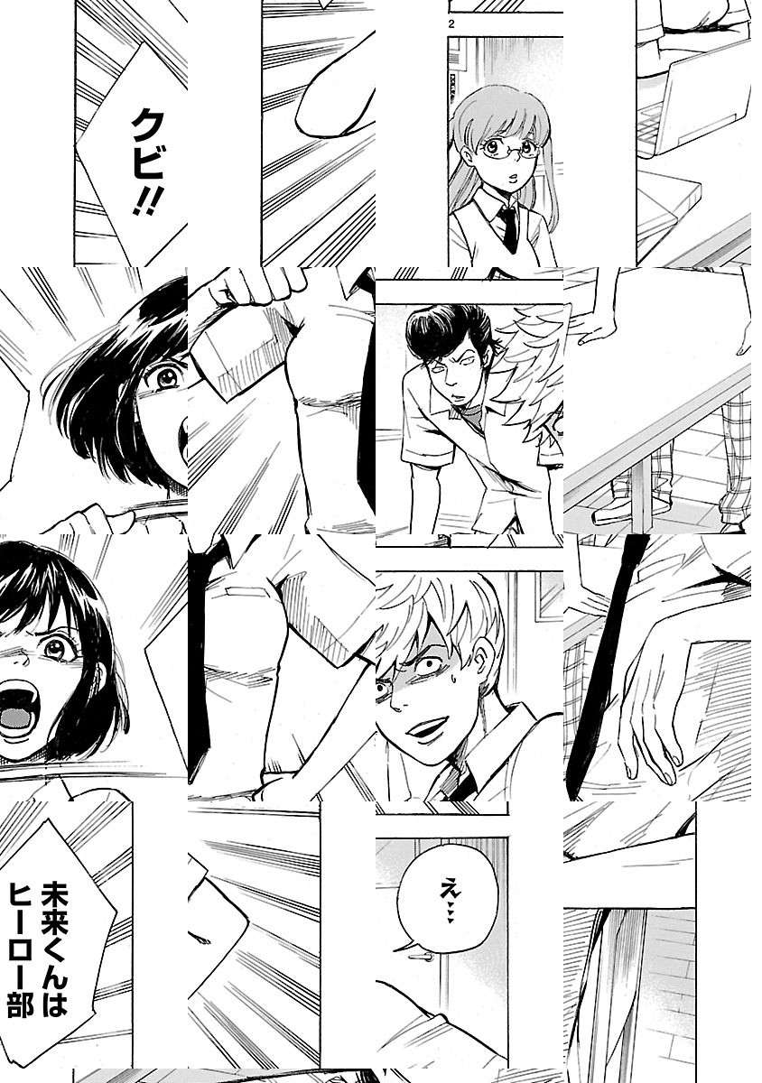 ヒーロー不在の現代。不良に絡まれ、殴られる主人公・渋谷未来。もちろん、彼のピンチを救ってくれるヒーローは現れない。ある日、転校した先でトラブルに巻き込まれる未来。 絶体絶命の窮地に立たされた彼の前に、本物のヒーローが登場する!! 世のため、人のため、戦い続ける過激なハイスクール・ヒーローライフ!!