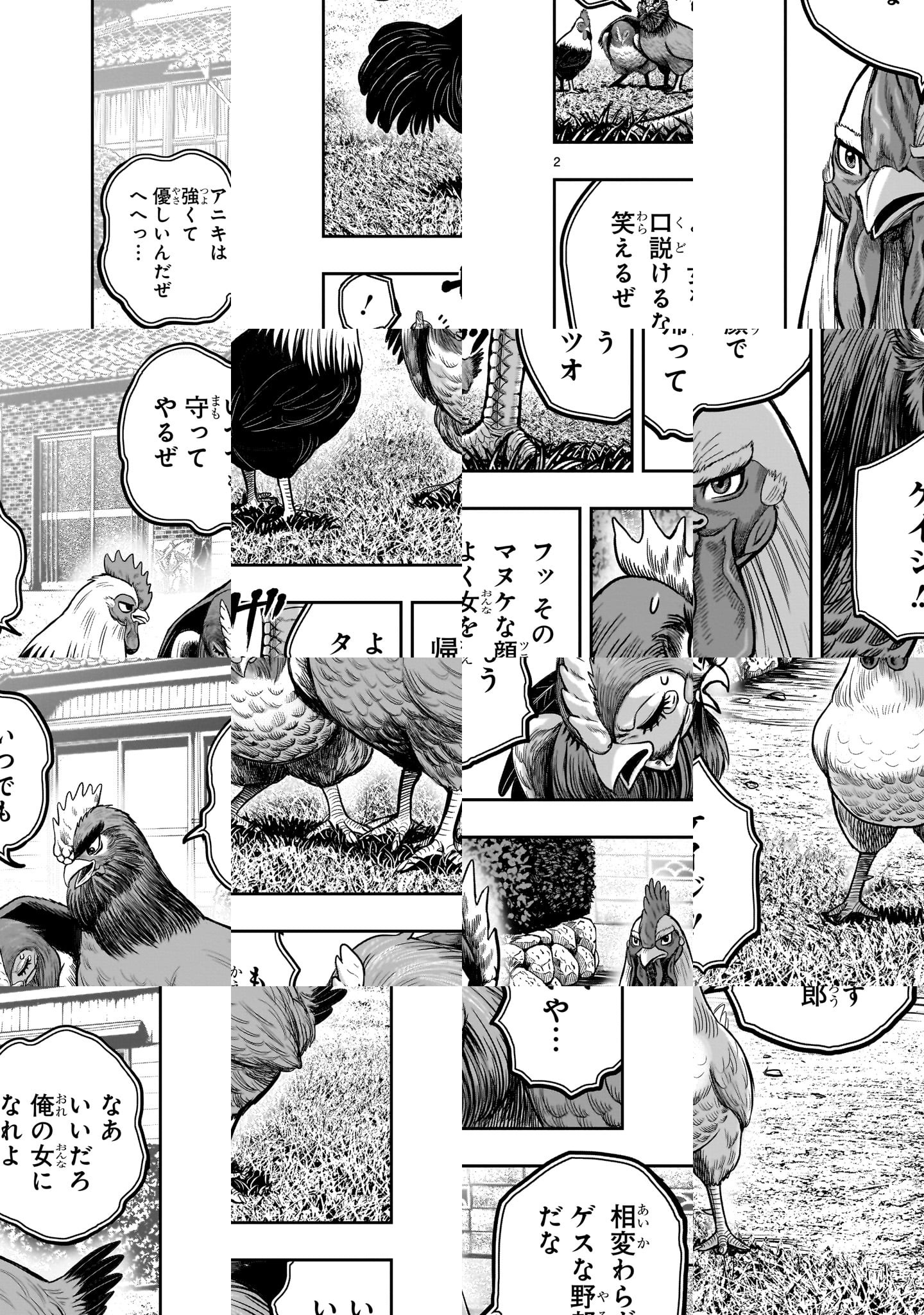 突如現れ、圧倒的な力で人類への攻撃を始めた “鬼獣(きじゅう)”と呼ばれる異形のモノ。 街を破壊され、絶望に暮れる人々。 誰もが諦めかけたその時、鬼獣に立ち向かう一つの影が! 「テメーら、トサカにくるぜ!!」 人類の前に降り立った、小さな希望。 それは一羽のニワトリだった!!!! 『T-DRAGON』の桜谷シュウが描く、 前代未聞のオンドリ・バトル・アクション、開幕!! これは、一羽のニワトリが人類を救う物語である。