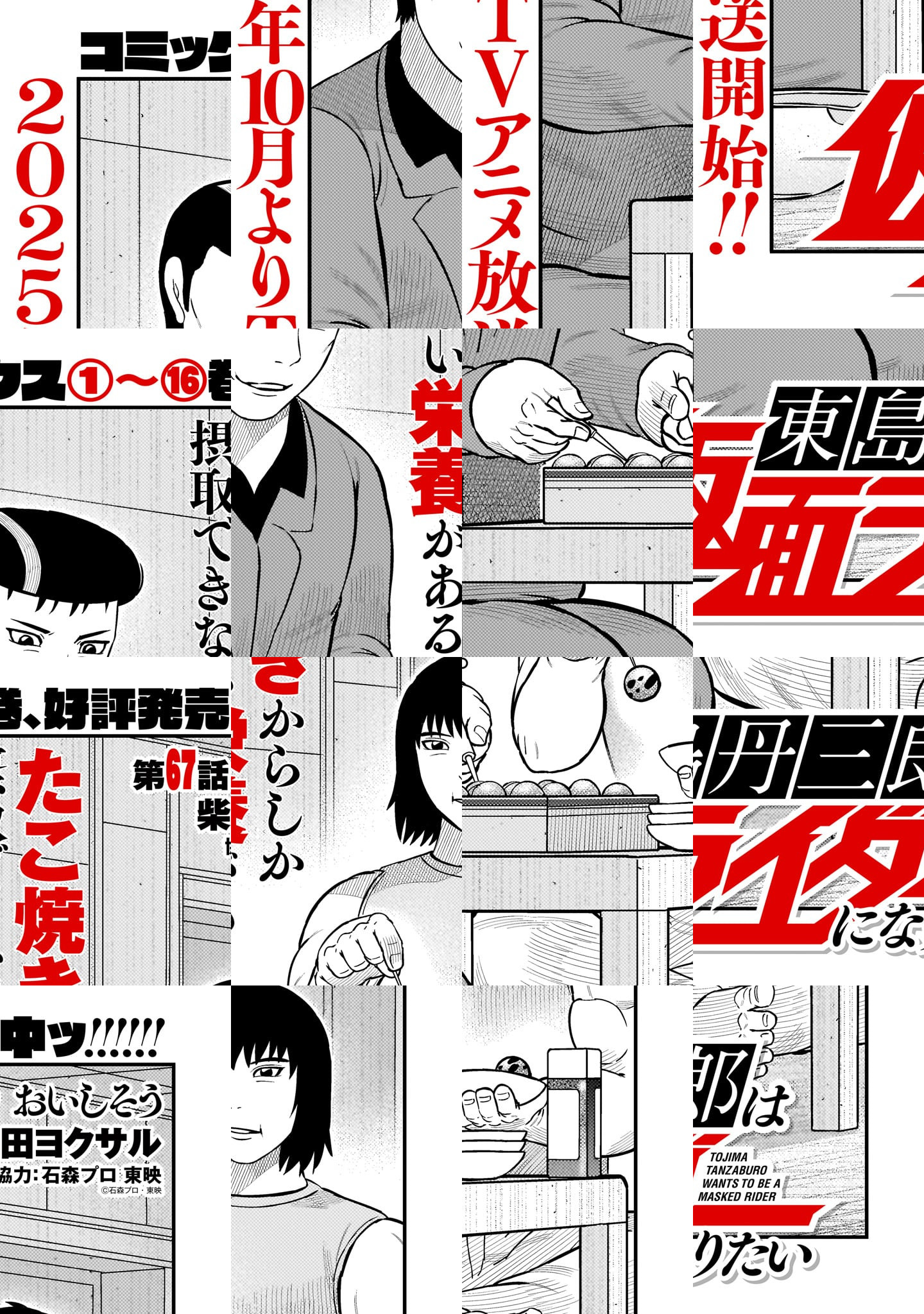 小さい頃から本気で“仮面ライダー”になりたかった東島丹三郎(とうじま たんざぶろう)は、40歳になった今でもその夢を追い続けていた。そんなある日、「ショッカー現る!」というニュースが報道される。それはショッカー戦闘員のような覆面を被った、ただのチンピラによるコンビニ強盗事件。マスコミが面白がって「ショッカー」と呼称しただけの偽物だと理解していても、東島の正義の心は燃えていた。「俺のは“仮面ライダーごっこ”じゃないから」こうして東島は“仮面ライダー”のお面を顔にまとい、偽物のショッカー事件を解決すべく戦う決意をする——。