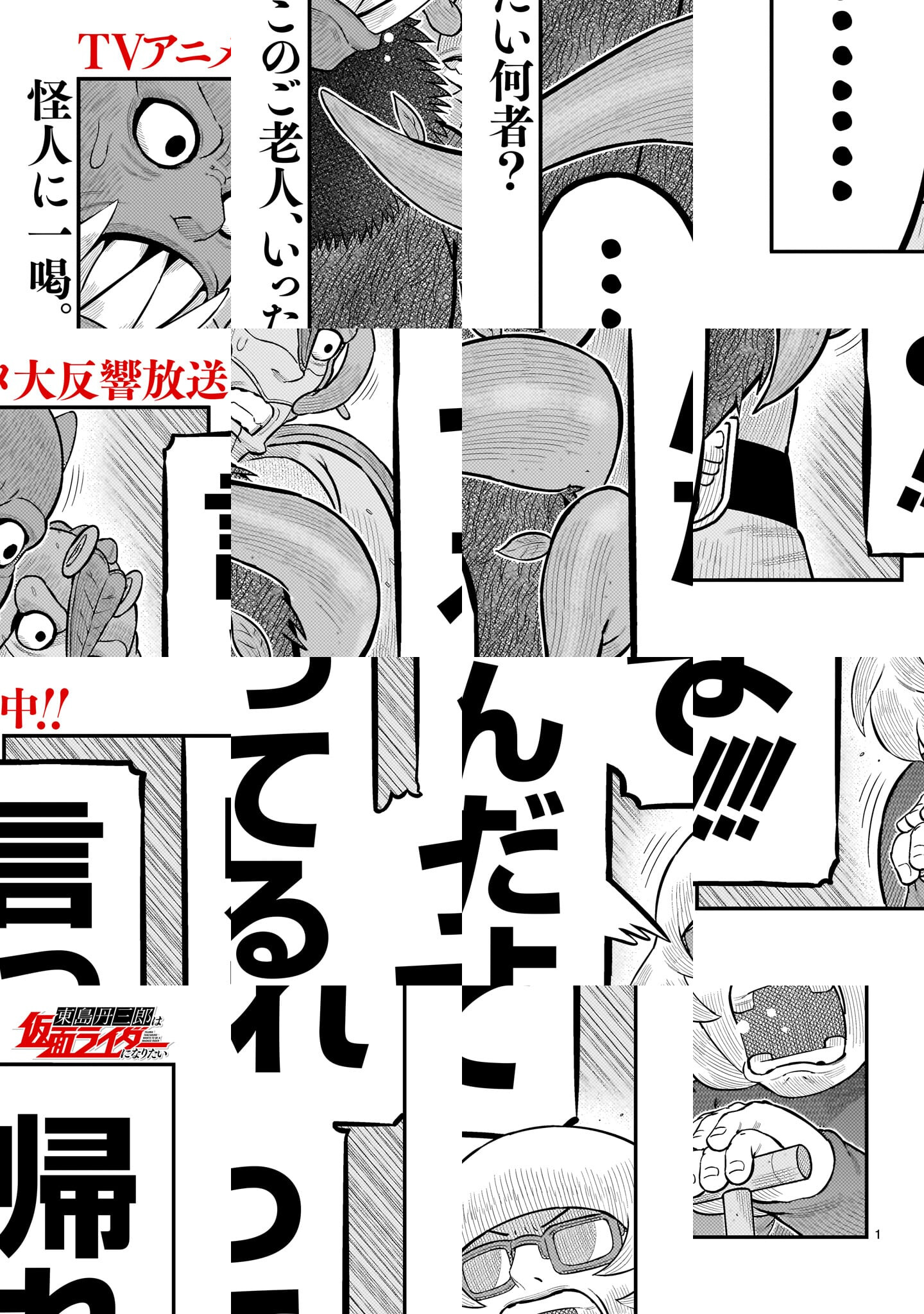 小さい頃から本気で“仮面ライダー”になりたかった東島丹三郎(とうじま たんざぶろう)は、40歳になった今でもその夢を追い続けていた。そんなある日、「ショッカー現る!」というニュースが報道される。それはショッカー戦闘員のような覆面を被った、ただのチンピラによるコンビニ強盗事件。マスコミが面白がって「ショッカー」と呼称しただけの偽物だと理解していても、東島の正義の心は燃えていた。「俺のは“仮面ライダーごっこ”じゃないから」こうして東島は“仮面ライダー”のお面を顔にまとい、偽物のショッカー事件を解決すべく戦う決意をする——。