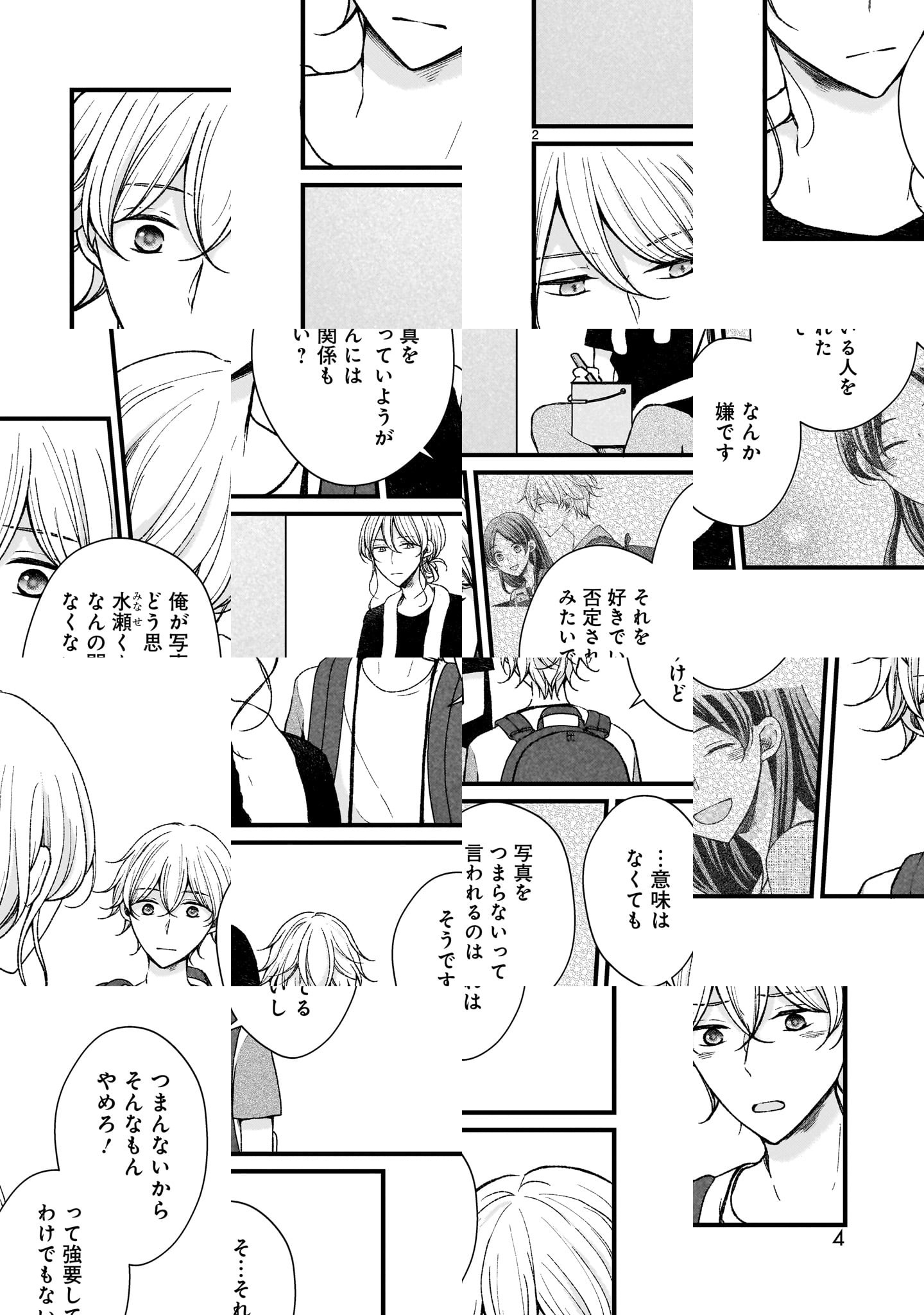 色弱者の大学1年生・水瀬蒼太。他とは違う色彩で世界が見えていることで「普通」の人とは違うという気持ちを抱えていた。そのせいで色に関わることを遠ざけていた蒼太だったが、とある写真サークルが展示していた一枚の写真に出会い、無理だと思っていた写真の世界へと一歩踏み出す。写真を通し様々な考えや想いに触れていく中で蒼太が気付く世界の彩りとは――!