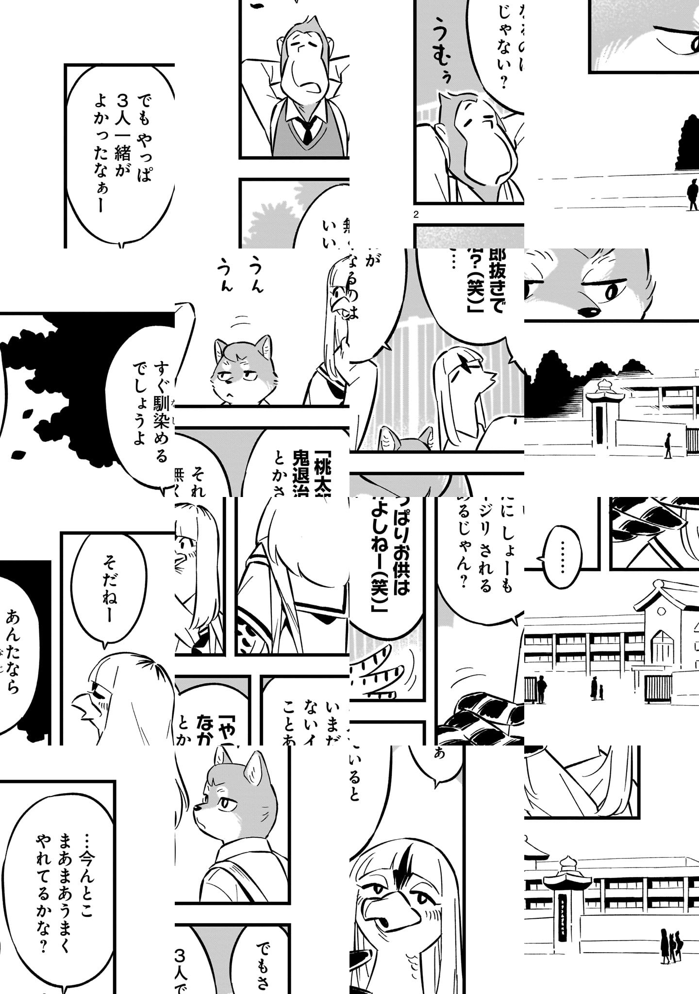 かつて生死を懸けて戦った桃太郎と鬼王丸。 しかしその子孫たちも現代となれば、争うことなく平穏に暮らしております−−。 ヒト、モモ、ツノ、ケモノ……。 多種族が織りなす「ももたろう」のその後のせかい!!
