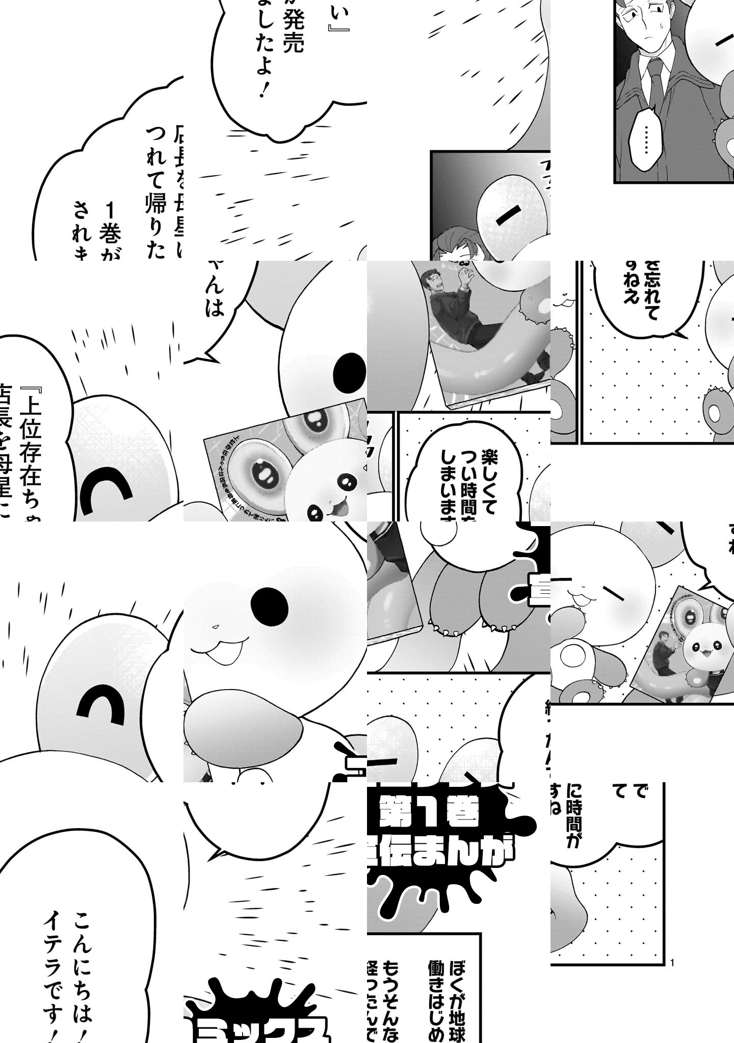 かわいいけどとってもすご〜い上位の存在・イテラくんが、だ〜い好きな店長さん(地球人のおっさん)とスーパーマーケットで働く楽しい漫画です。