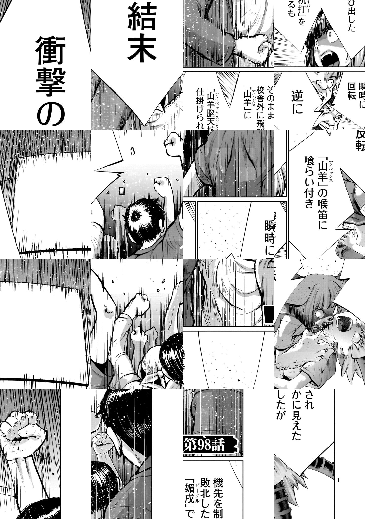 冴えない青年・野本は謎の少女・ヒトミと出会い、とある廃棄場へと連れてこられる。行き場のないモノが集められたそこでは、人の頭脳と獣の牙を併せ持つ「獣人」達による凄惨な賭け試合が行われていた——。その戦いの名は「牙闘(キリングバイツ)」——!