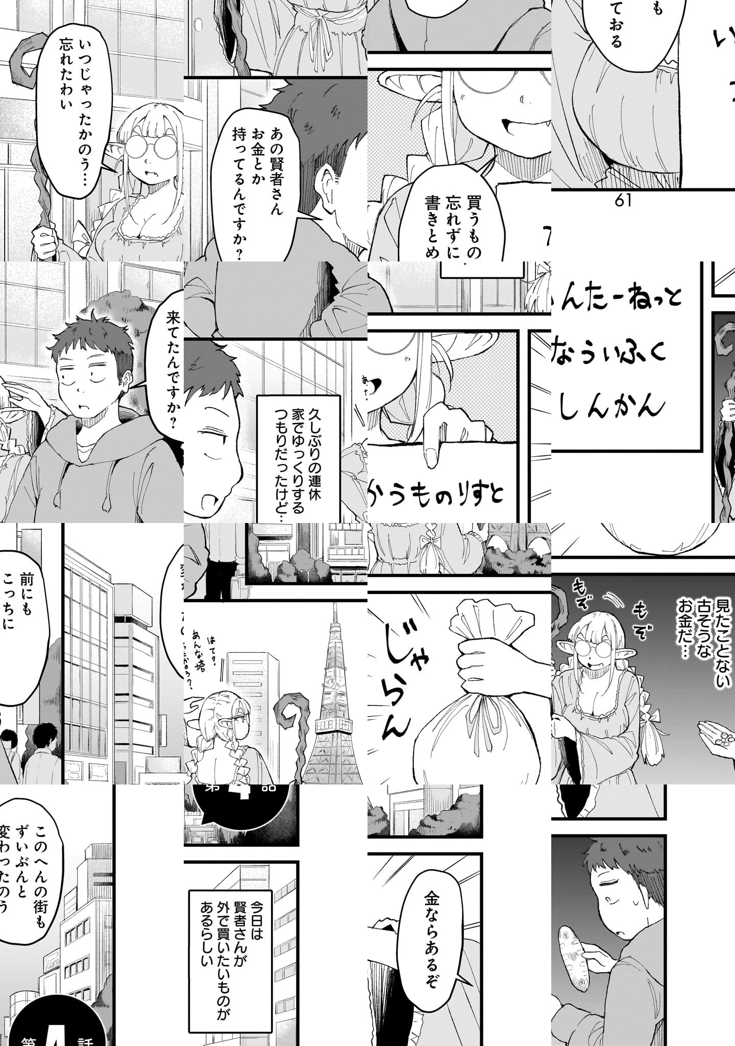 疲れ果てたサラリーマン・天野の部屋のお風呂場に、ある日突然、エルフさんが現れた!? ポンコツだけど、なんかすごい(本人談)エルフさんが人間界で漫画を読みながら、ほのぼのダラダラする異世界日常漫画。