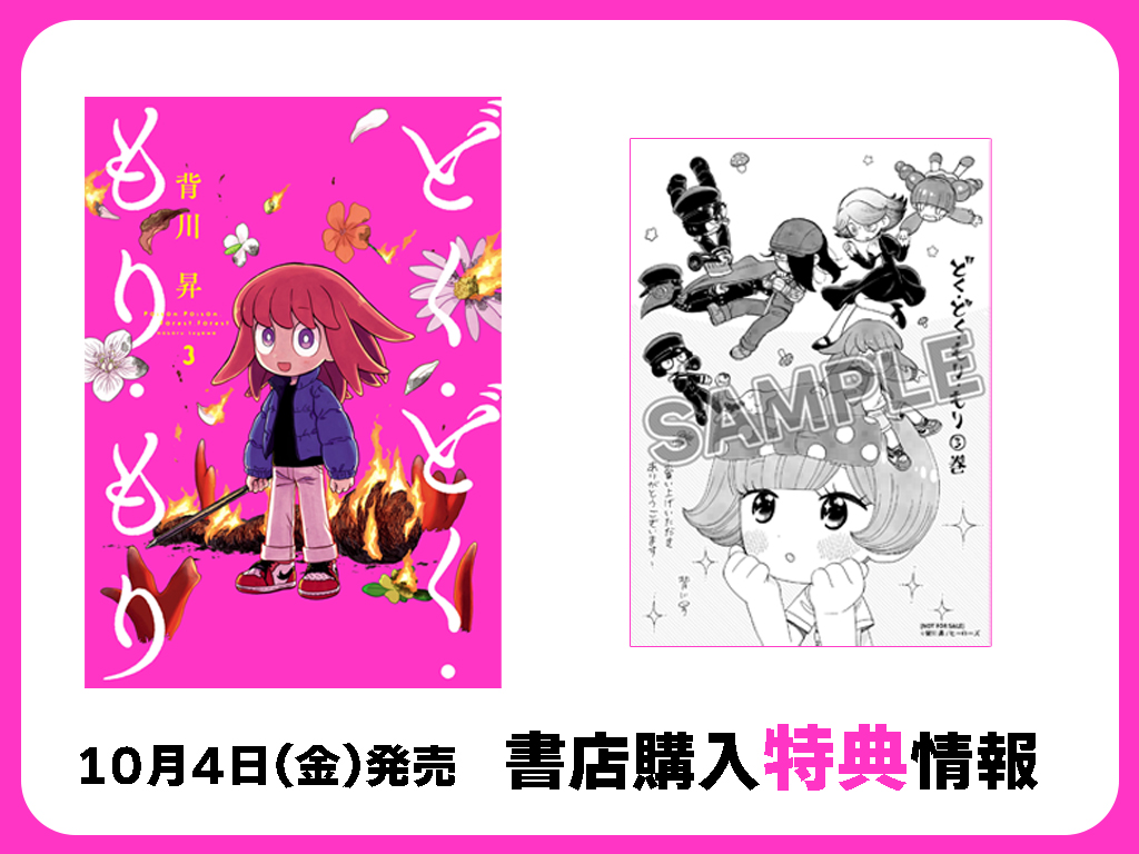 ヒーローズレーベルにて好評連載中の『どく・どく・もり・もり』3巻が、10月4日(金)に刊行されます。これを記念し、背川昇先生のサイン会を10月5日(土)に開催いたします。さらに今回も一部応援書店にて先生描きおろしの特典ペーパーを配布いたします。