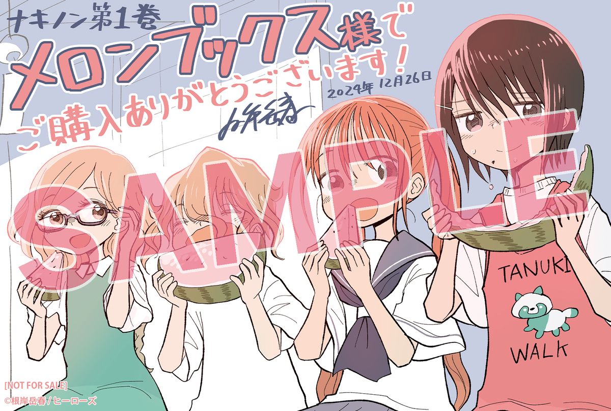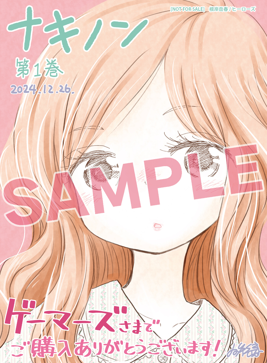 ヒーローズレーベルにて連載中の『ナキノン』の第1巻が12月26日(木)に発売となります。発売を記念し、各書店にて根岸岳春先生描き下ろしの特典イラストカードを配布いたします。また、先生直筆の色紙が当たるプレゼントキャンペーンを実施いたします。